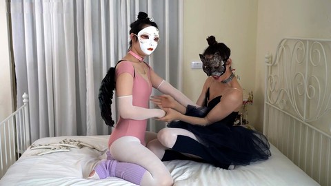 Ballerina explores glans play while in ballet gloves